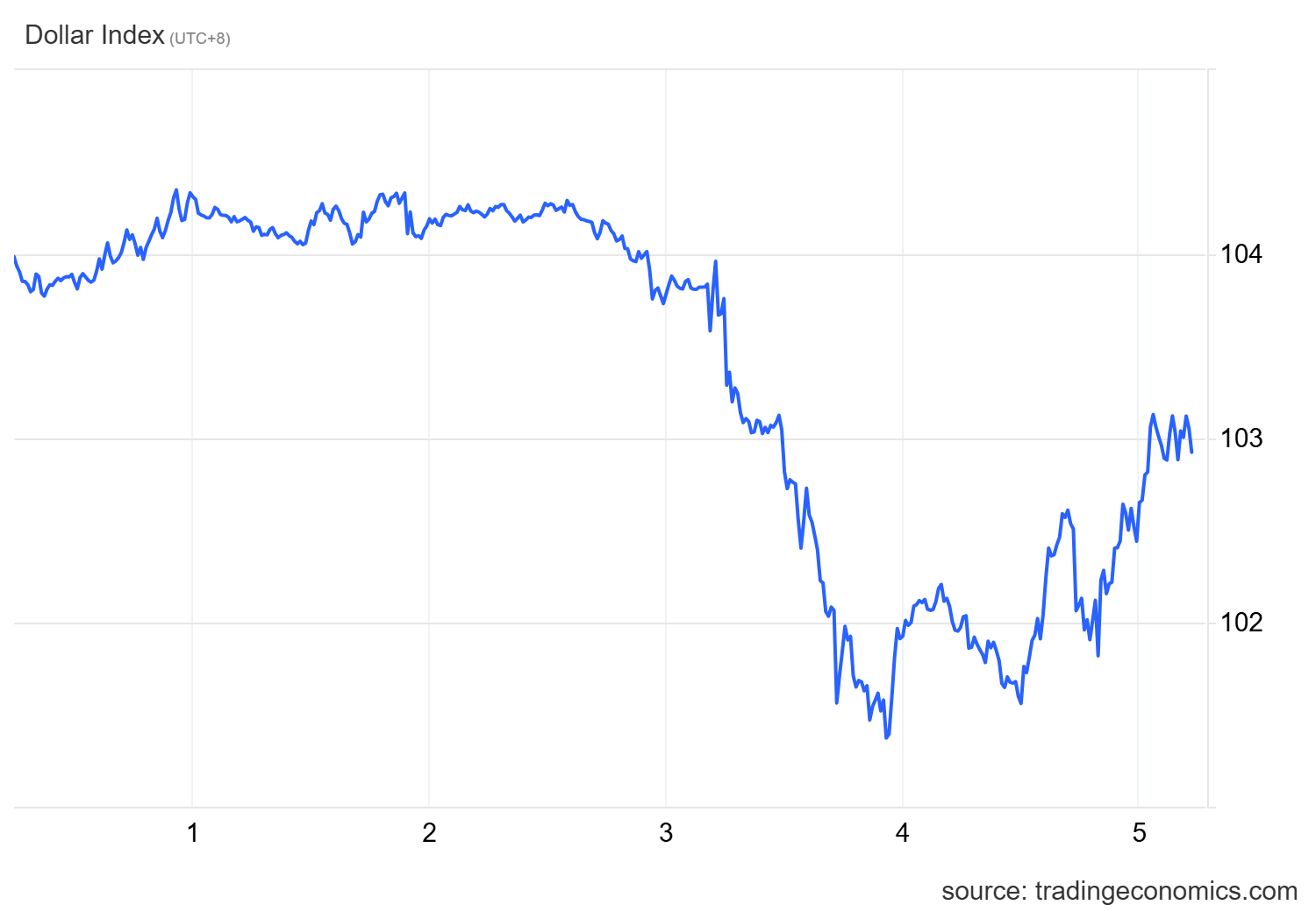 美元指数交易于102点以上,接近六个月来的最低水平。
