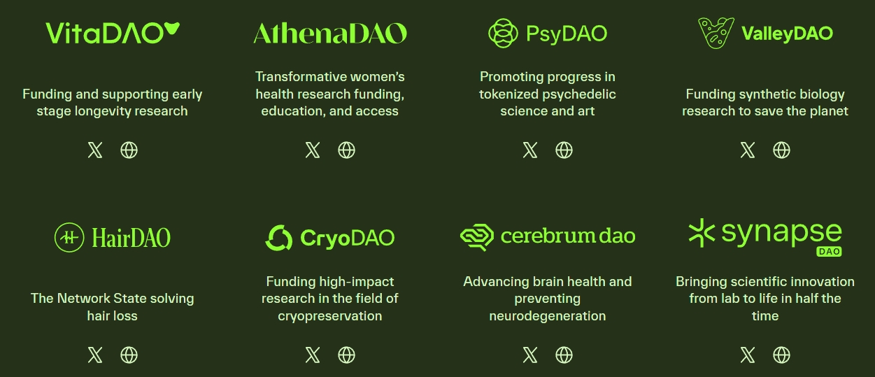 BIO 协议是 DeSci 的金融层,旨在加速资本和人才流入链上科学。BioDAO 借助其拍卖合约募资,直接支持研究、IP 资产及生物技术组织。目前已有七个 BioDAO,覆盖低温保存、女性健康、精神健康等领域,协议代币 BIO 及相关 DAO 代币均值得关注。