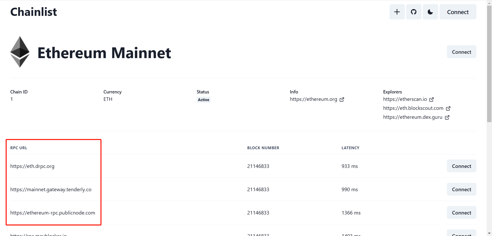 你可以在 Chainlist 查看各链的 RPC 地址: